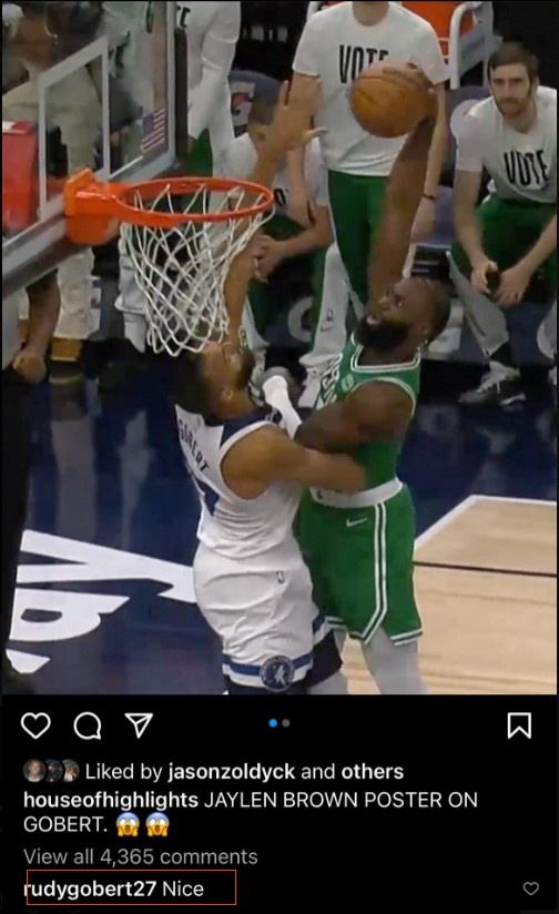 心态可以!戈贝尔评论被杰伦-布朗隔扣照:漂亮!