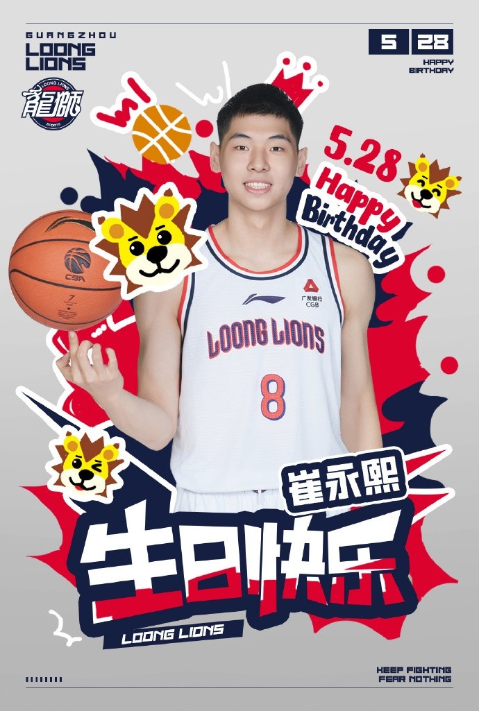 5月28日讯 今天是广州男篮新星崔永熙的21岁生日,球队官博晒照送上了生日祝福:“祝愿在大洋彼岸勇敢追求篮球梦的小崔生日快乐!