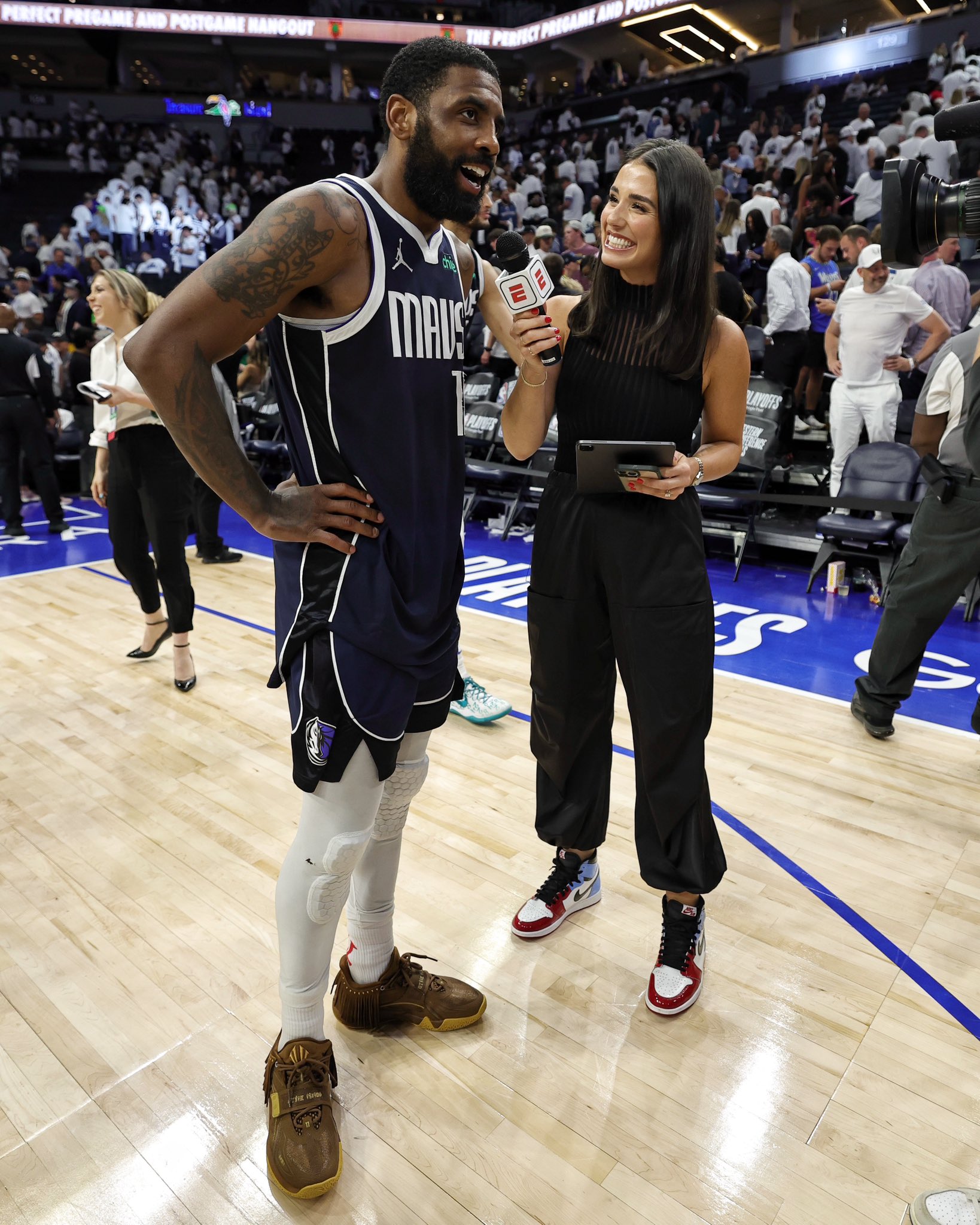 美女记者晒照:恭喜独行侠晋级总决赛!报道西决很有趣!