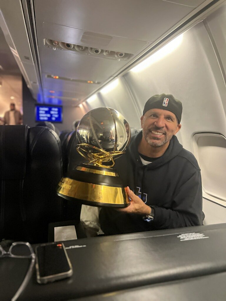 主教练基德更新了自己的社媒,他表示:“很高兴把西决冠军奖杯带回了达拉斯,但是我们的使命还没有完成,达拉斯准备好!我们要去总决赛了!”