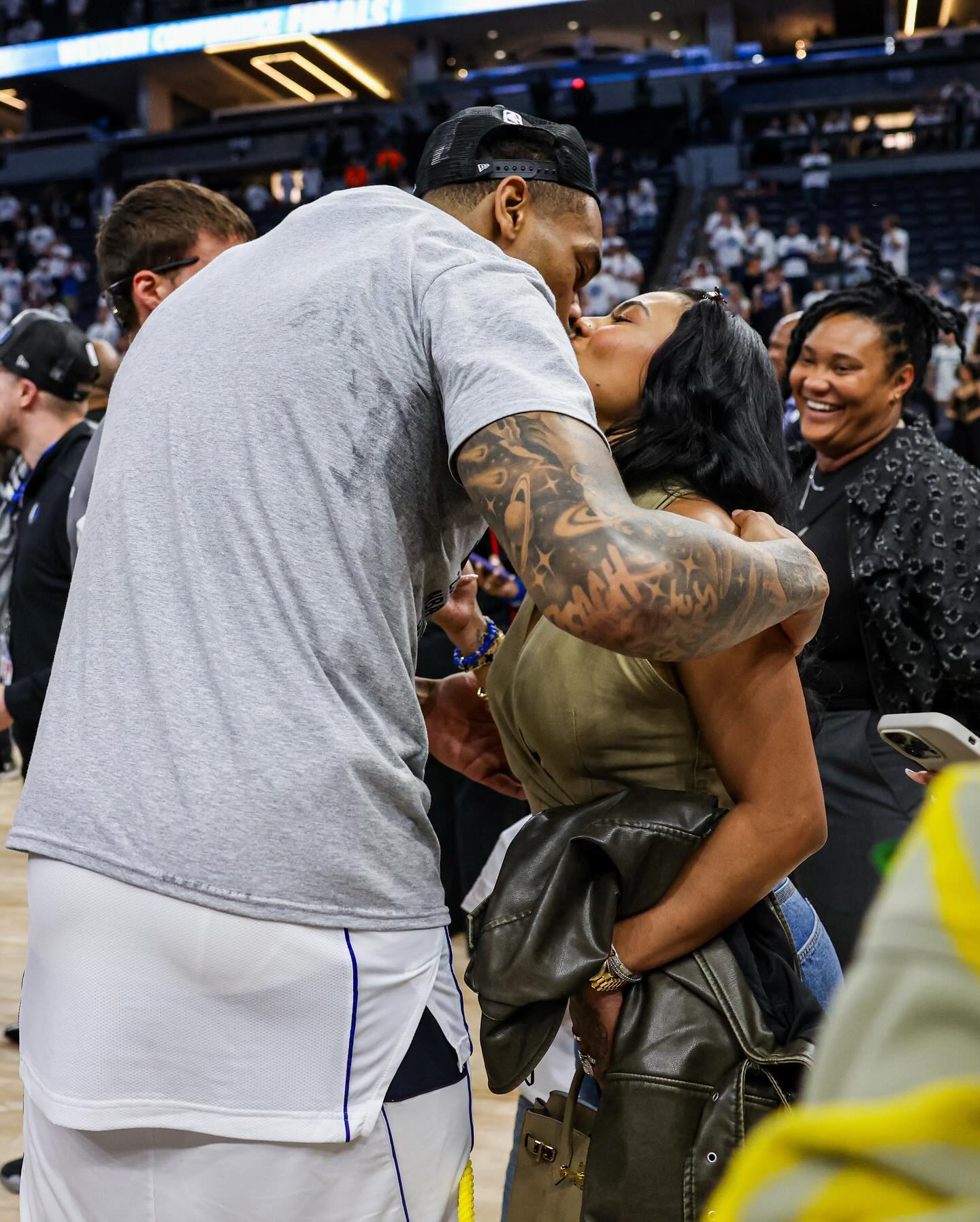 独行侠锋线PJ-华盛顿的老婆阿丽莎更新了社媒,晒出昨日的照片并表示:“工作还没有完成,但这个冠军我们可以稍微庆祝一下~”