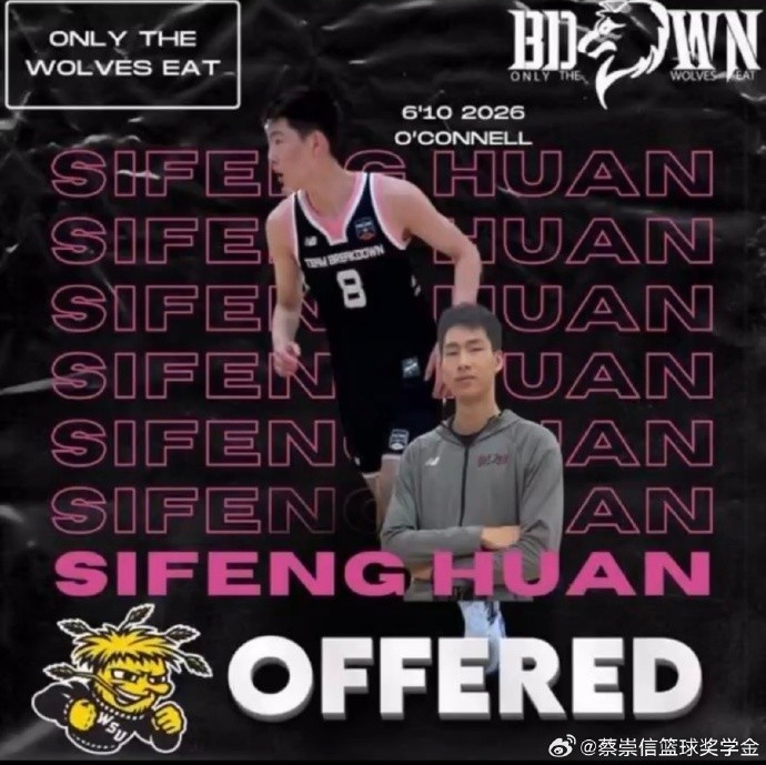 6月8日讯 据蔡崇信篮球奖学金官博透露,他们的2022级学员郇斯枫(2007-208cm-F)已经收获来自NCAA一级联盟卫奇塔州立大学的offer。