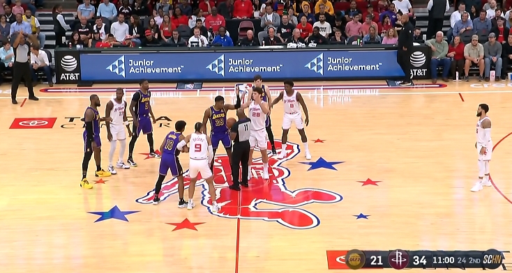 詹姆斯快攻背传八村 泰特连人带球拦下被吹犯规 乌度卡挑战成功!