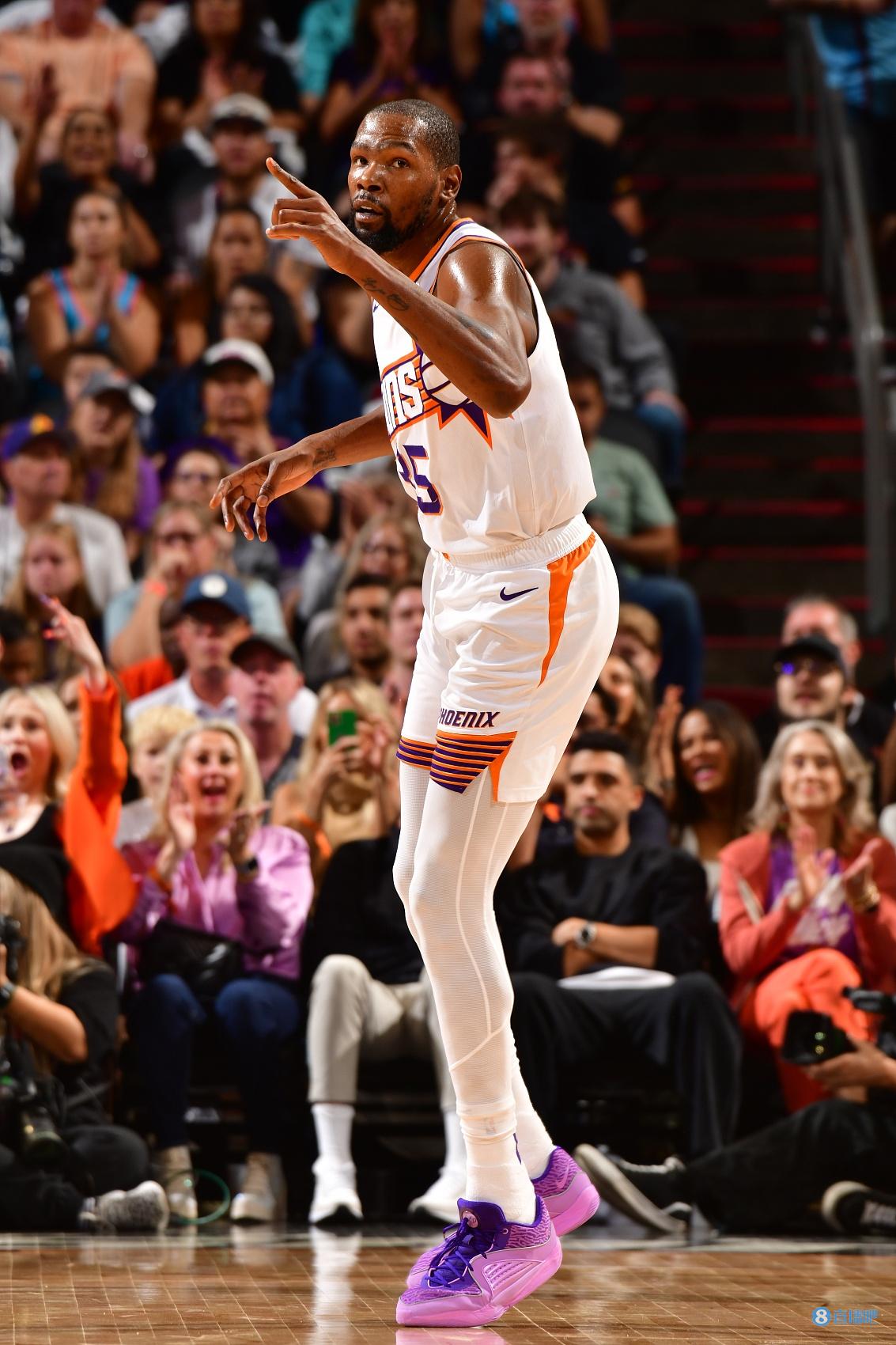 11月9日讯 NBA常规赛,太阳首节36-28领先公牛。首节比赛,杜兰特继续充当“劳模”,进攻端效率很高,他打满首节,4投2中(三分2中1),罚球5罚全中,拿到10分2篮板3助攻1盖