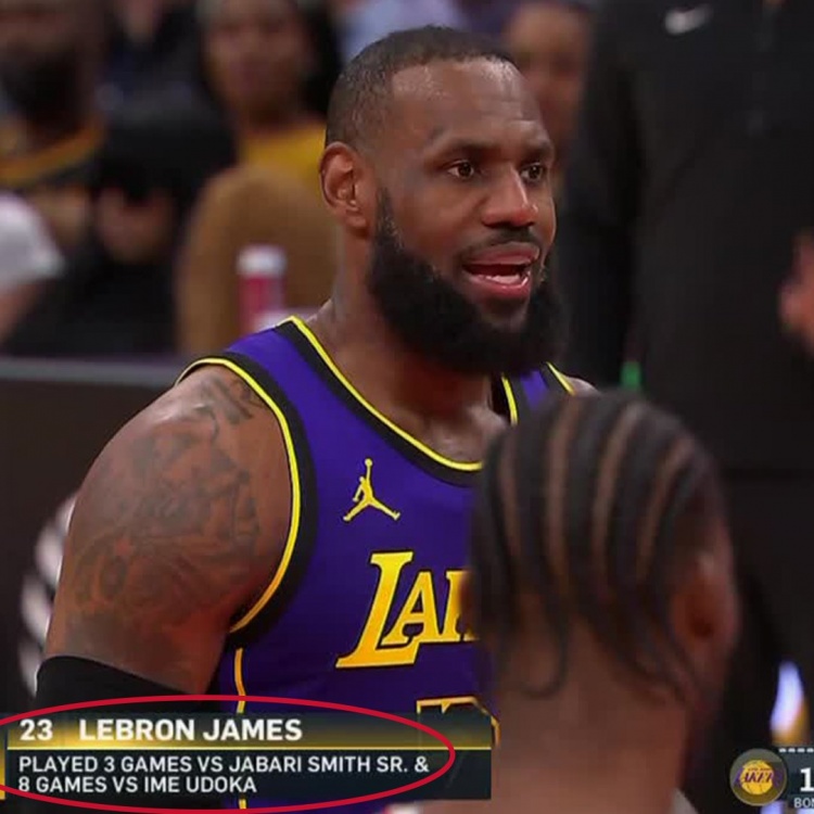 比赛中转播方晒出一组数据:詹姆斯与贾巴里-史密斯(小贾巴里-史密斯的父亲)曾有过3次交手记录,与火箭主帅乌度卡有过8次交锋记录。
