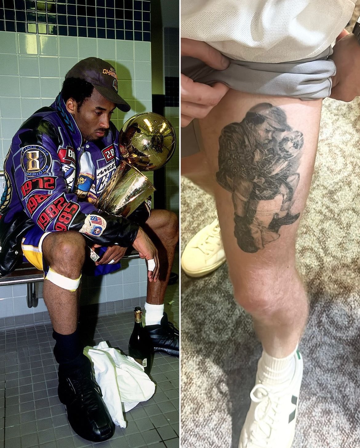 真科蜜!卡鲁索将科比01年夺冠名场面文在了自己的大腿上