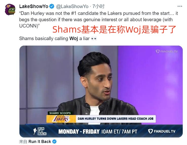 叫板师傅!美网友:Shams说Woj是骗子?湖人才是最尴尬的