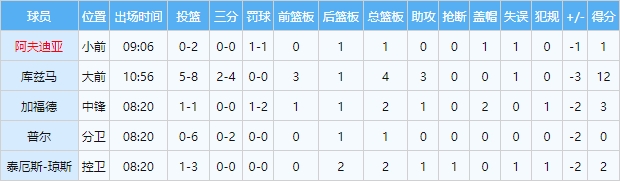 不过奇才其他首发普尔、琼斯、加福德、阿夫迪亚合计仅得到6分,这也导致球队以24-29结束首节。