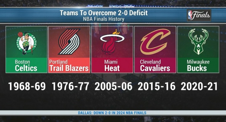 0-2落后总决史上共5支球队完成逆转!最近两支为16骑士&21雄鹿