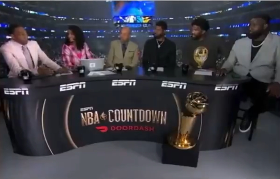 6月15日讯 NBA总决赛,恩比德和乔治一起作为嘉宾解说本场比赛。