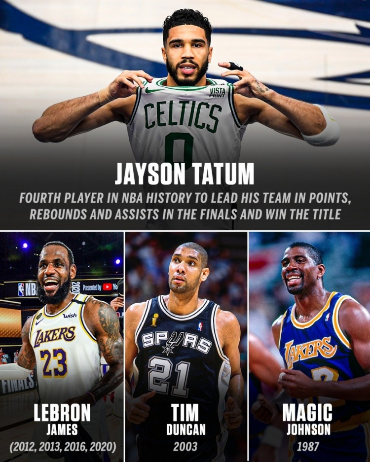 塔图姆总决赛分板助领跑全队且成功夺冠 历史第4人&老詹4次做到