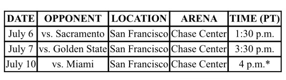 湖人公布加州经典赛赛程:7月7日VS国王 8日VS勇士 11日VS热火