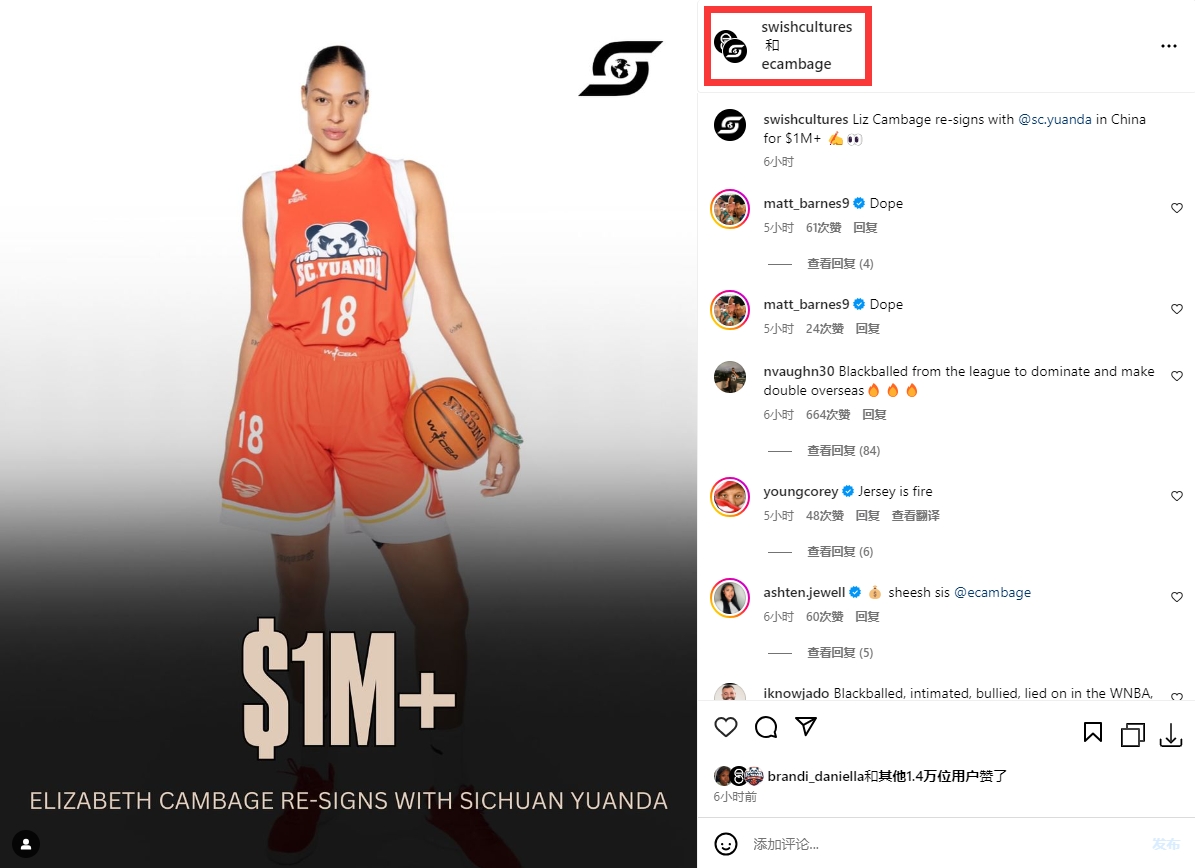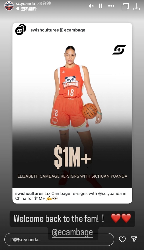 坎贝奇与四川女篮完成续约价格超100万美元 四川女篮官方转发确认