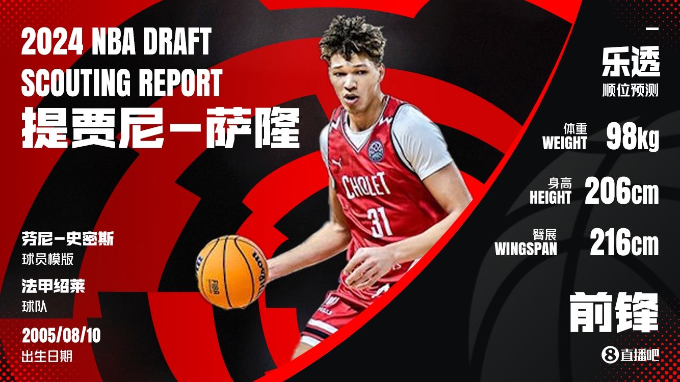 06月27日讯 2024年选秀大会,黄蜂保留6号签选择萨隆!据此前报道,灰熊用9号签向上交易获得6号签,要选克林根,但是交易显然破产了新秀巡礼:又一法国小伙