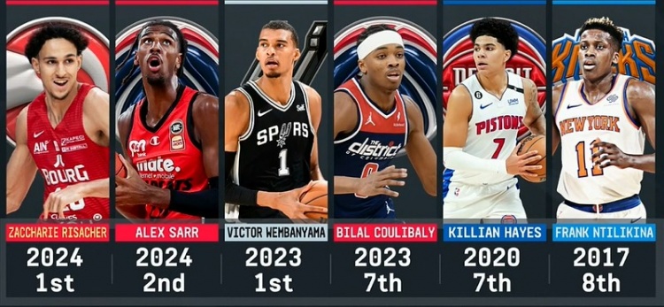 法国至今已有6人在前10顺位被选中 包括2状元1榜眼和2个7号秀