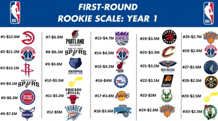 Marks晒首轮秀首年工资:前三顺位皆破千万 最少也有250万可拿