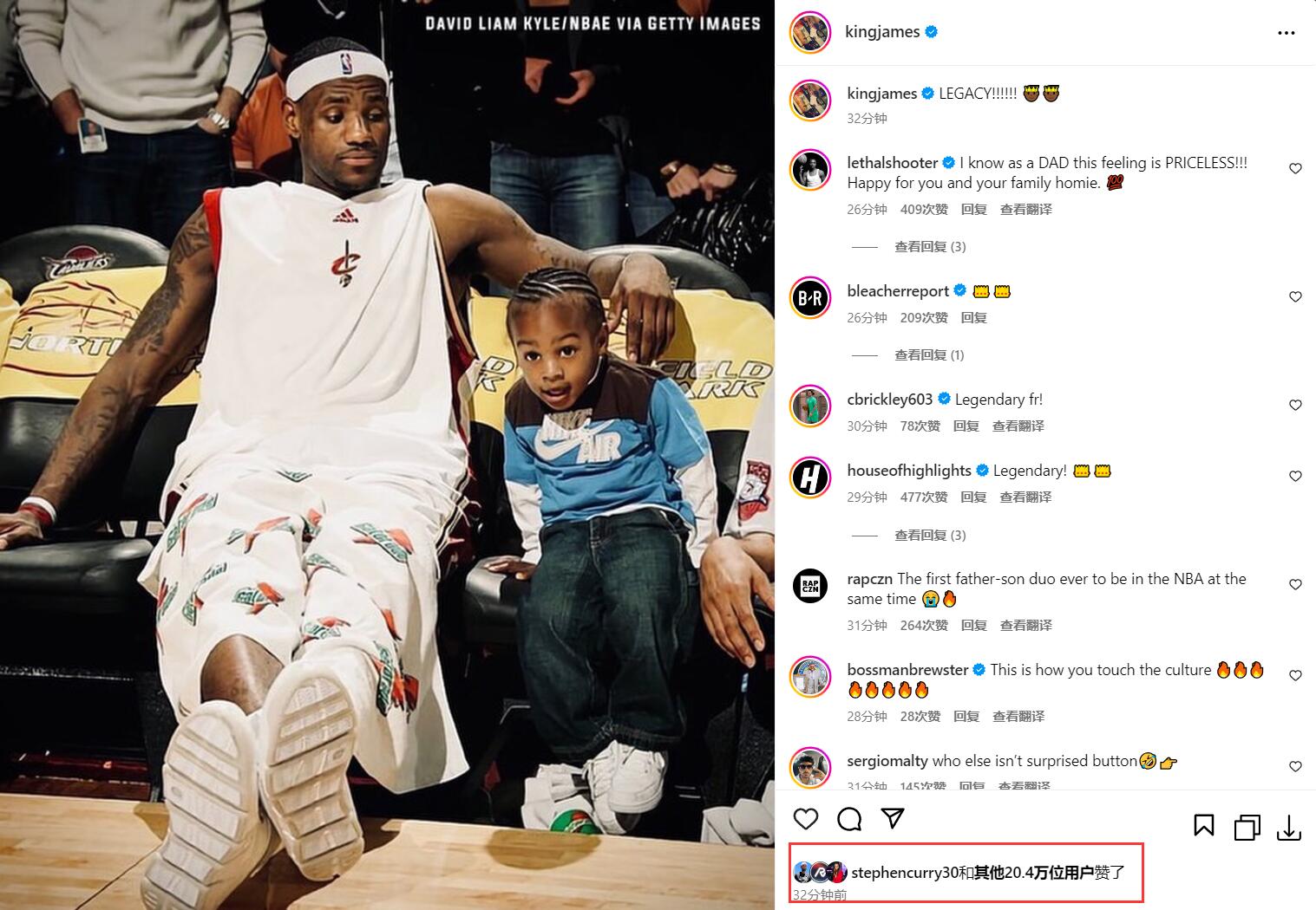 詹姆斯在不久前更新Instagram,晒出多张合照并写道:“传承!!!