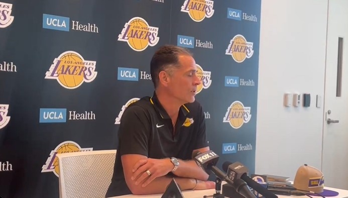 6月28日讯 NBA选秀大会,南加州大学后卫布朗尼-詹姆斯被湖人在第55顺位选中。这样一来,布朗尼和他老爹詹姆斯在同一个队。佩林卡在接受采访时表示:“布朗尼,首