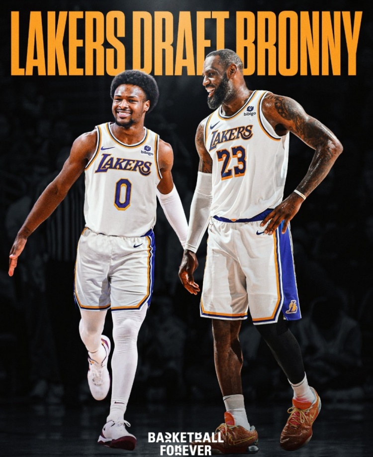 父子同台了!来看看布朗尼和詹姆斯湖人球衣P图合照