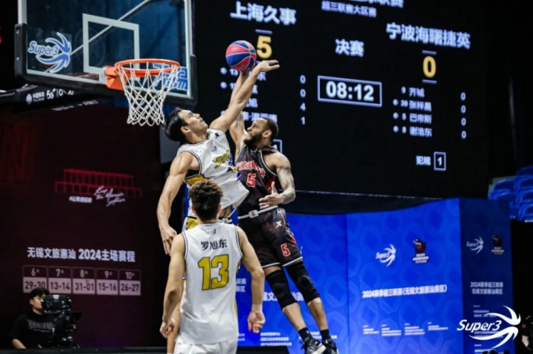 决赛在上海久事与宁波海曙捷英之间展开。上海久事开局强势,温亚德、黄旭内外开花,其中黄旭命中2记两分球,帮助球队以5-0取得完美开局。宁波海曙捷英沉着应对,张梓晨、巴帝斯先后还以两分,将比分扳成4-5。上海久事稳扎稳打,继续保持高效得分,宁波海曙捷英则再度陷入得分荒,上海久事一度以14-7取得大比分领先。宁波海曙捷英没有放弃,凭借齐城、巴帝斯的外线投射,球队将分差缩小至3分。媒体暂停过后,上海久事老将罗旭东再度上演神奇时刻,他连续飚中2记两分球,帮助球队拿下赛点。随后,罗旭东送出关键助攻,镇守篮下的温亚德强势打进,上海久事最终以21-12打爆比分,夺得冠军。