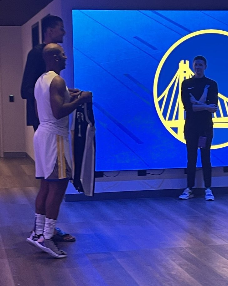 上赛季保罗和文班合影,保罗悄悄踮起脚尖