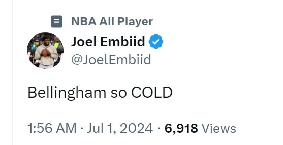 恩比德更推道:“贝林厄姆太冷血了。”