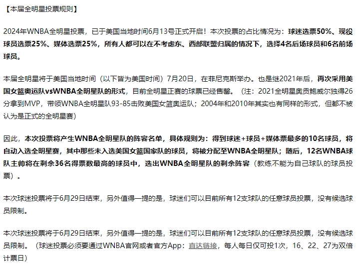 【相关阅读】WNBA全明星首期球迷投票 阿贾-威尔逊领跑仅领先状元克拉克1000票