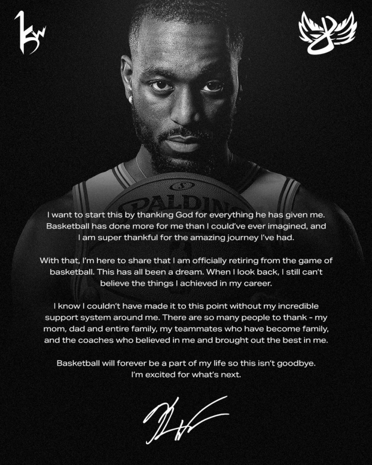 相关内容>>>肯巴-沃克退役信:篮球永远是我生命一部分 所以这并不是在说再见