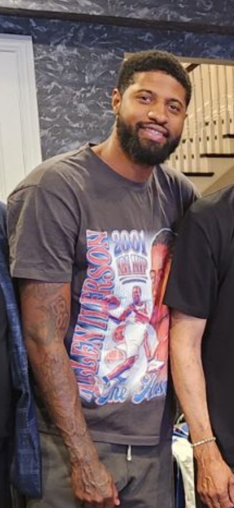 名记:乔治此前邀请76人高层到其LA家中商讨 还穿着了一件AI的T恤
