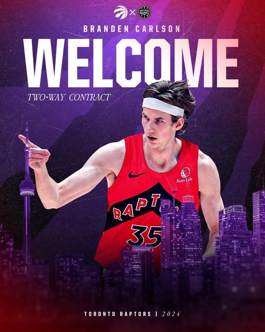 猛龙官方:球队已经和布兰登-卡尔森签下双向合同