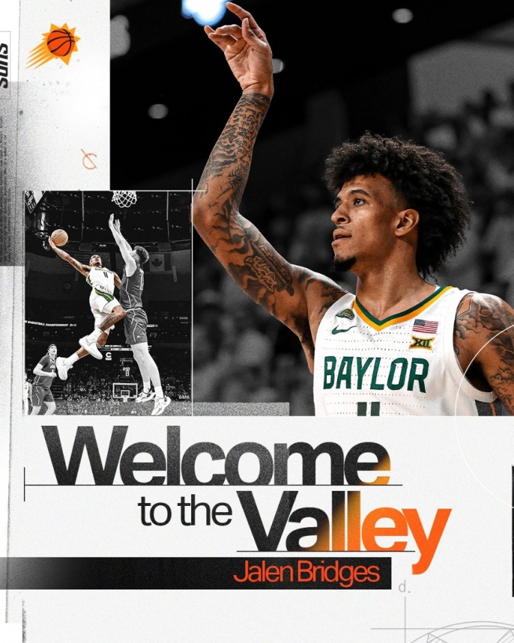 太阳官宣:球队签下前锋杰伦-布里奇斯 大四赛季场均12.2分5.7板