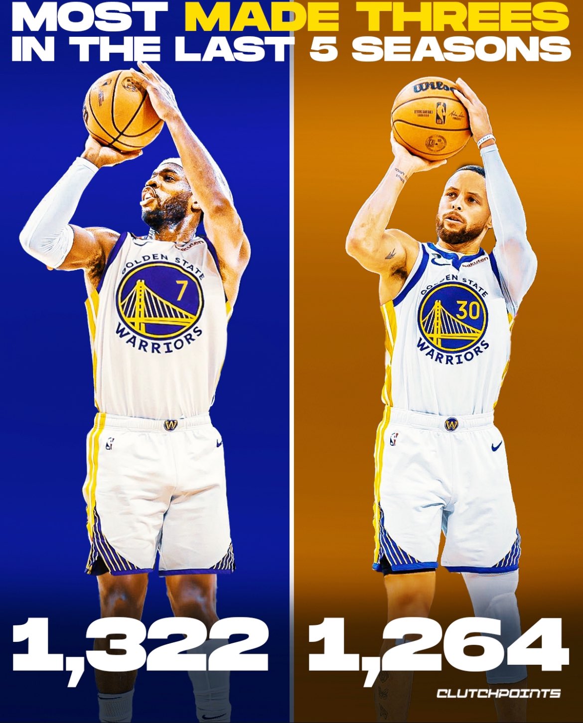 希尔德和库里是过去5个赛季三分球命中最多的球员,现在他们即将成为队友。