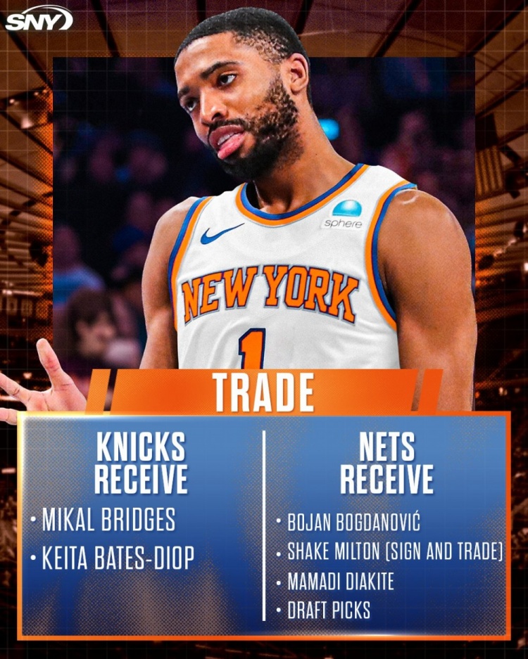 7月5日讯 据名记Shams报道,消息源称,尼克斯通过先签后换的方式将谢克-米尔顿交易至篮网,作为米卡尔-布里奇斯/博扬-博格达诺维奇交易的一部分,而篮网还把贝茨-