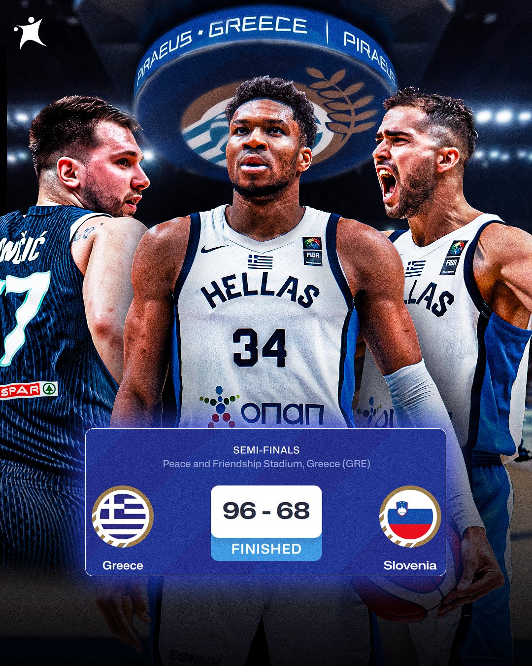 本场比赛,字母哥带领希腊先发制人,开局就打出一波15-2,首节以32-14确立了近20分的分差。斯洛文尼亚此后苦苦追赶无果,并在最后一节再次崩盘,最终大比分落败。