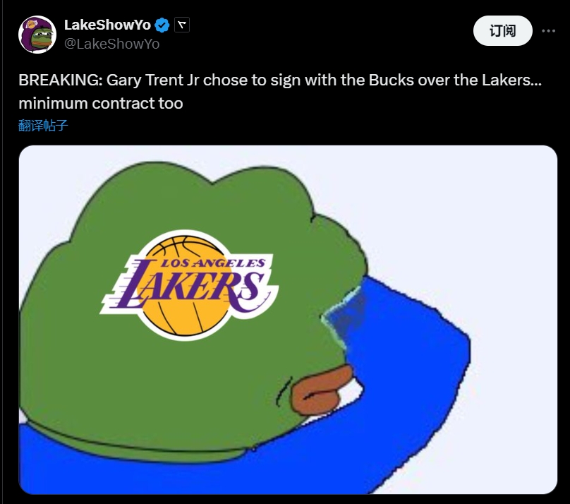 湖人自媒体破防:同样给底薪......特伦特跳过湖人选择了雄鹿