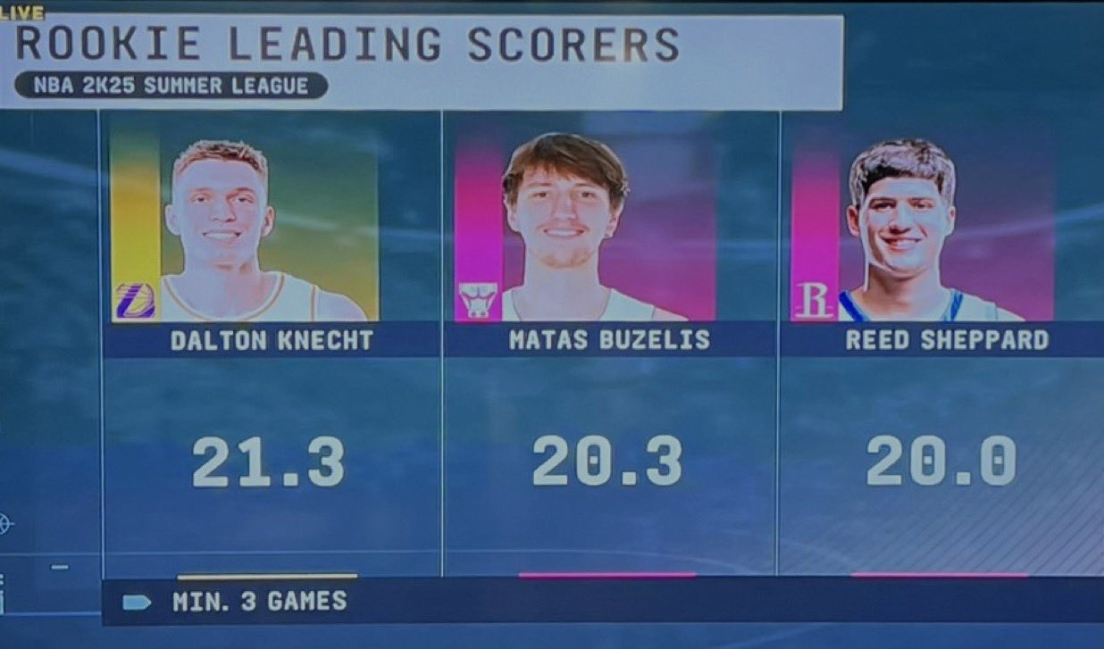 本届新秀夏联得分榜:克内克特21.3分领衔 谢泼德第三