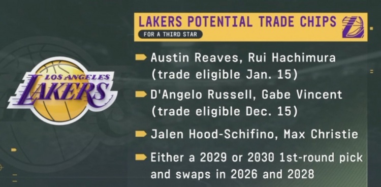 11月11日讯 美媒ESPN今日在节目中列出了湖人的现有交易资产,并发问:“这些能为球队换来第三位球星吗?”