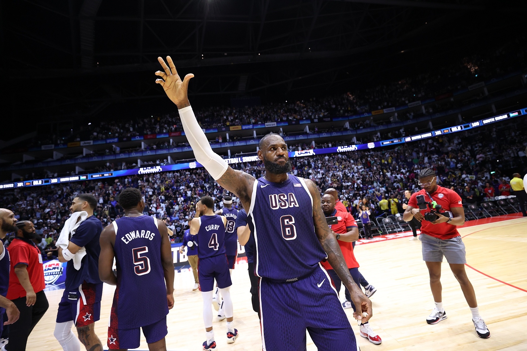 即使梦十六队众星云集,老詹在五场热身赛过后,依然是团队最粗的大腿:对阵南苏丹,14中10,高效砍下25分6板7助,上篮准绝杀;今晨最后4分钟独得11分,带领美国男篮力克德国——定海神针,中流砥柱,美国男篮众望所归的领袖大哥。