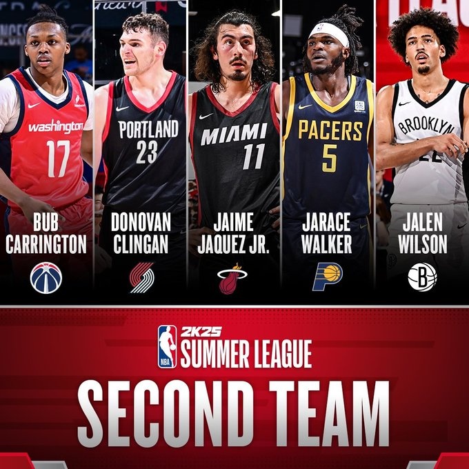 入选二阵的5名球员为:卡林顿、克林根、小海梅-哈克斯、贾雷斯-沃克、杰伦-威尔逊。