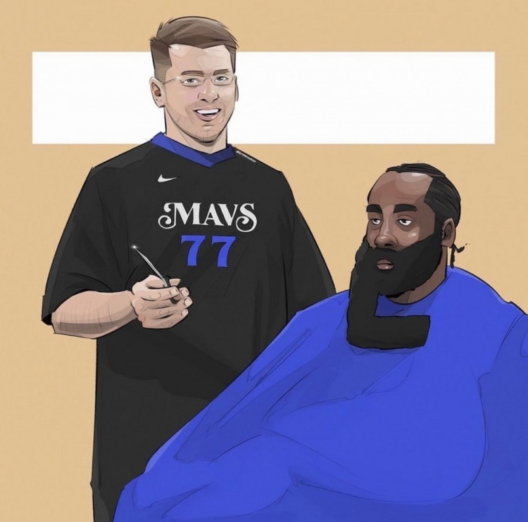 有点损!美媒晒东契奇剃登哥大胡子漫画:哈登首秀后快船0-3