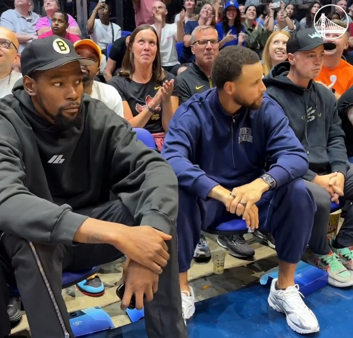 本来库里杜兰特哥俩是坐一块儿的