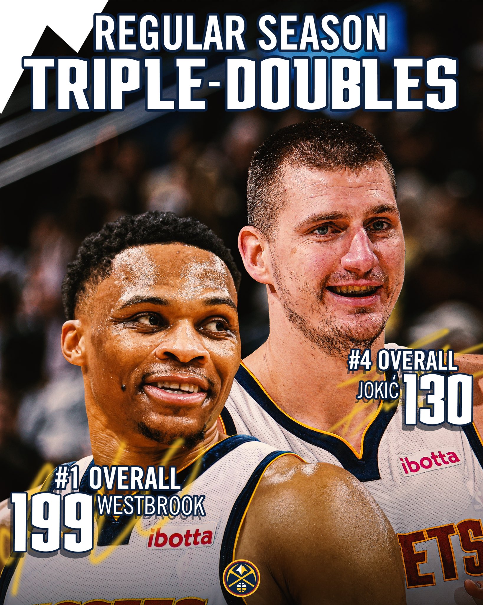 要一起打球了!掘金官方晒图:威少199次三双历史第1 约基奇排第4