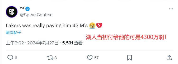 - 里夫斯:就算勒布朗六年前退役他仍是GOAT 他继续打就是因为热爱
