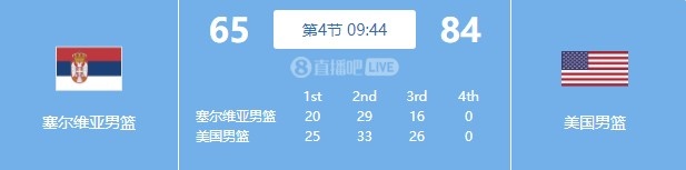 第三节,美国男篮攻防两端占据优势,单节以26-16净胜对手10分,三节打完美国男篮84-65领先塞尔维亚。