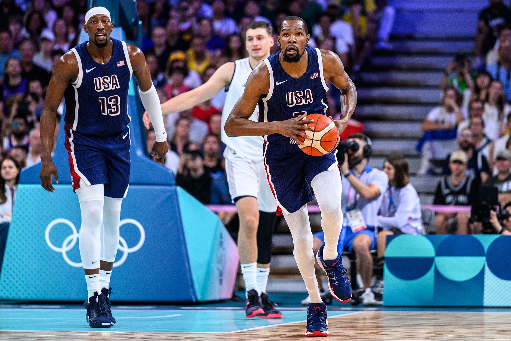 7月29日讯 奥运男篮小组赛C组,美国男篮半场58-49领先塞尔维亚男篮。