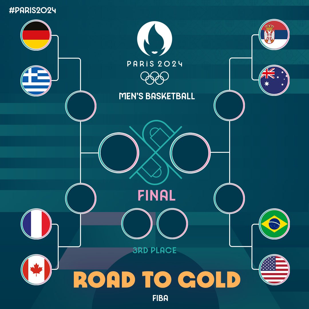 奥运男篮8强对阵:美vs巴、塞vs澳、加vs法、德vs希
