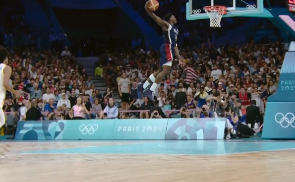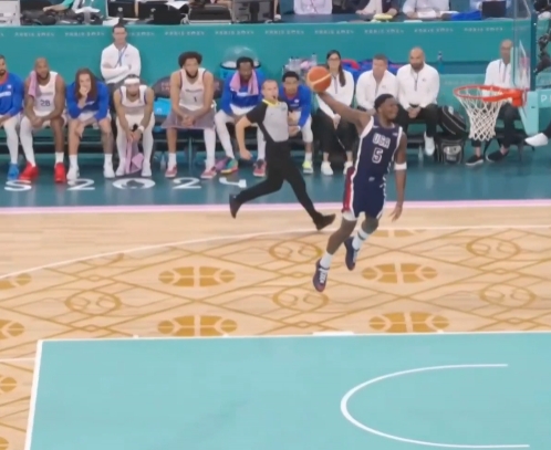 抡得真圆!爱德华兹快攻贡献本届奥运会第一个大风车灌篮!