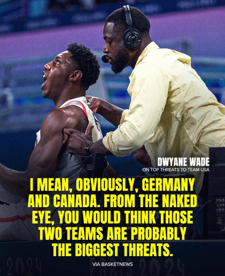 NBA名宿韦德在接受采访时说道:“我的意思是,很明显,德国和加拿大(威胁最大)。从肉眼来看,你会认为这两支球队可能是美国队的最大威胁。”