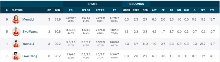 而中国队在上两届世界大赛中,出场时间最多的也只是邵婷在东京奥运会的26.2分钟。主力们在这种超长时间的使用下,体力崩盘甚至做出一些不合理的选择似乎也是有迹可循。