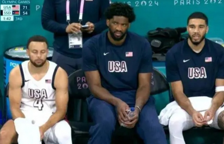 再往前追溯,小组赛前两场,恩比德的表现不尽如人意。美国男篮110-84战胜塞尔维亚,他5投2中得到4分2个篮板1盖帽,三分1中0中,还有2次失误3次犯规,正负值仅为-8,是全队唯一负值。这直接导致他第2场小组赛对阵南苏丹一战中被DNP。戴维斯顶替他首发,打出了防守端的名声。不少人将恩比德斥为“美国男篮唯一的弱点。”